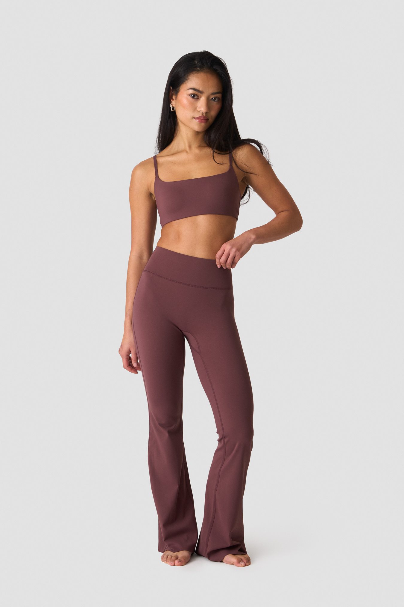 Nimble No-rise Flared Tights Petite levererar supermjuk komfort med en slank, självsäker siluett. De är tillverkade i en tjock, silkeslen jersey i polyamid/elastan som ger squat-säker täckning och en mjuk känsla som en andra hud, och följer dina rörelser obehindrat från studio till street. Den höga midjan sitter på plats och slätar ut, medan den utsvängda benformen förlänger och skapar en förfinad, modern look. Specifikt designade för petite-längder 158–164 cm med proportionerad innerbenslängd för en skräddad finish utan behov av uppläggning. Matcha med Nimble 2-in-1 Tank eller Nimble Molded Sports Bra för ett rent, uppgraderat set. 75% Polyamid, 25% Elastan.